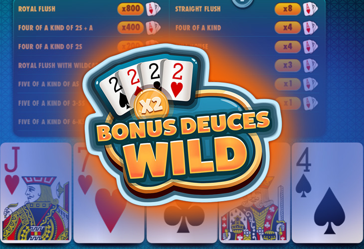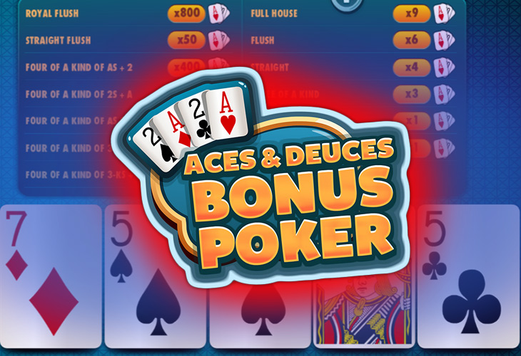 Поклонники видеопокера могут играть в игровой автомат Aces & Deuces Bonus Poker от Red Rake Gaming, в котором в каждой раздаче задействуется 1, 5, 10, 25 или 50 рук. Минимальную комбинацию составляет пара валетов или карт старшего номинала — она приносит выплату 1 к 1. Наиболее ценным сочетанием считается роял флеш — он дает х800.